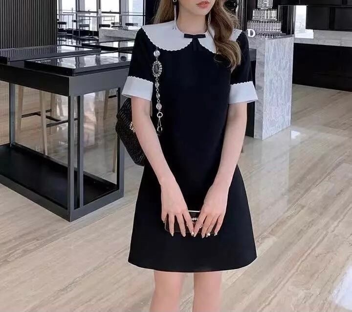 幅広の襟が特徴のミニドレス。フィット感のある半袖のシルエットにヴィンテージなロマンチシズムと女性らしさがあふれるデザイン。