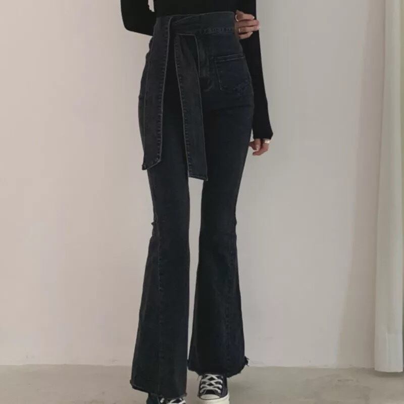 Denim flare high-waist pants